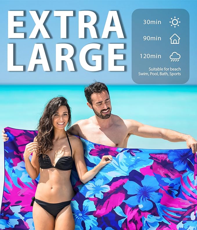 - ☀️[ Microfiber Lightweight ] High quality microfiber that absorbs water much faster than ordinary fabric! Eco-friendly, no faded and no smell. You can easily take it portable to avoid wet and cold on the beach. Multiple size options perfect for all adults and children.