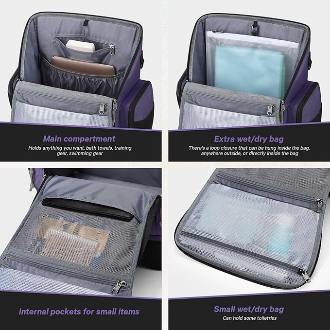 - Waterproof & Spacious: Our swimming backpack is crafted from upgraded waterproof polyester, ensuring durability against water and wear. With a generous 35L capacity, it accommodates all your swimwear, activewear, and training gear.