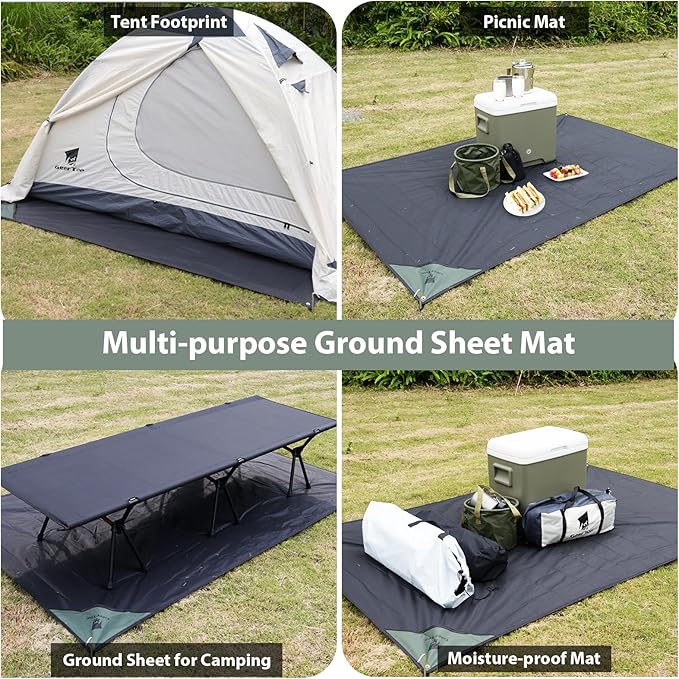 - 【Versatile Applications】Equipped with 4 metal loops sewn into the corners, this mat can serve as a Tent Footprint, Tent Shelter, Backpacking Tarp, Ground Sheet, Rain Fly Shelter, or Hunting Tarp. It is perfect for a variety of outdoor activities such as Camping, Hiking, Picnicking, Cycling, and Backpacking