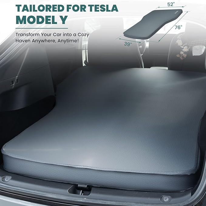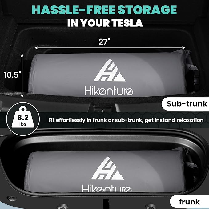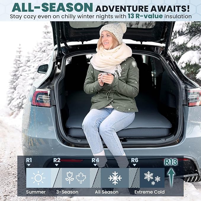 Hikenture Self Inflating Sleeping Pad for Tesla Model Y, Ultra Thick Car Camping Mattress Bed for Model Y, Insulated Double Sleeping Pad with Foam, R-Value 13 Camping Pad for All Season