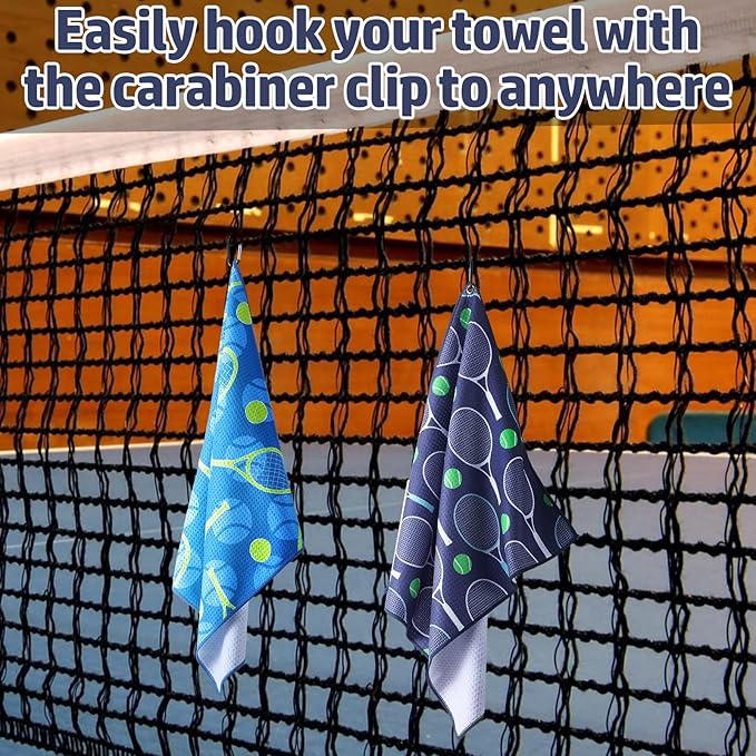 - Quick and Easy Accessibility: each tennis sweat towel is equipped with a clip, with this, you can easily attach it to your tennis bag, belt loop, or backpack for easy accessibility; You'll never have to rummage through your bag in search of your towel again