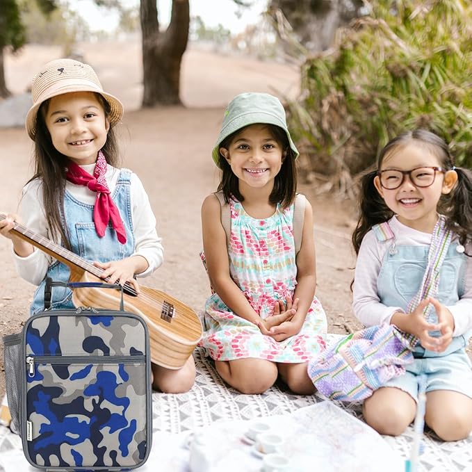 Lunch Box for Kids Boys Girls Men Women, Insulated Small Soft Cooler Lunch Bag Kit for School Work Picnic Travel - Reusable Portable lunchbox,Blue Camouflage