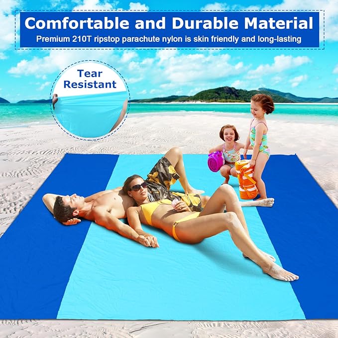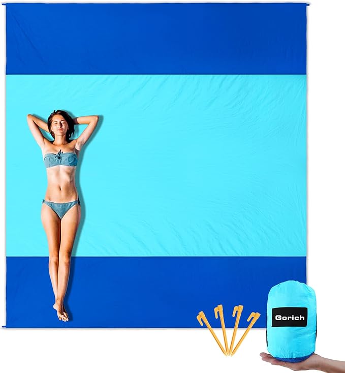 Gorich Beach Blanket Sandproof Waterproof, Extra Large Sand Free Beach Mat Fits up to 8 Adults, Lightweight & Quick Drying Picnic Mat for Outdoor Beach Travel Camping Hiking