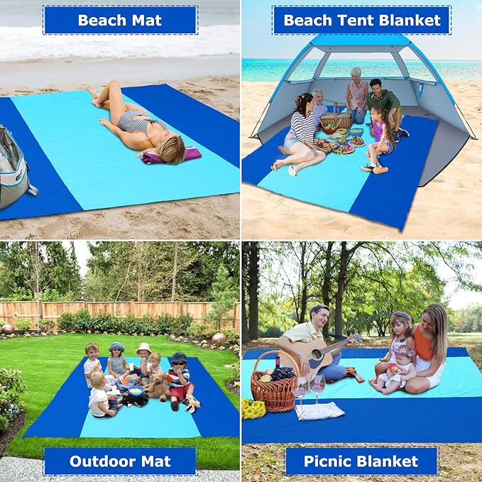 Gorich Beach Blanket Sandproof Waterproof, Extra Large Sand Free Beach Mat Fits up to 8 Adults, Lightweight & Quick Drying Picnic Mat for Outdoor Beach Travel Camping Hiking