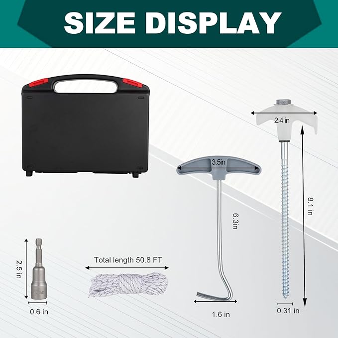 - ACCESSORIES: easy to store and sturdy carrying case, 13mm hex bit, 50FT tent rope.