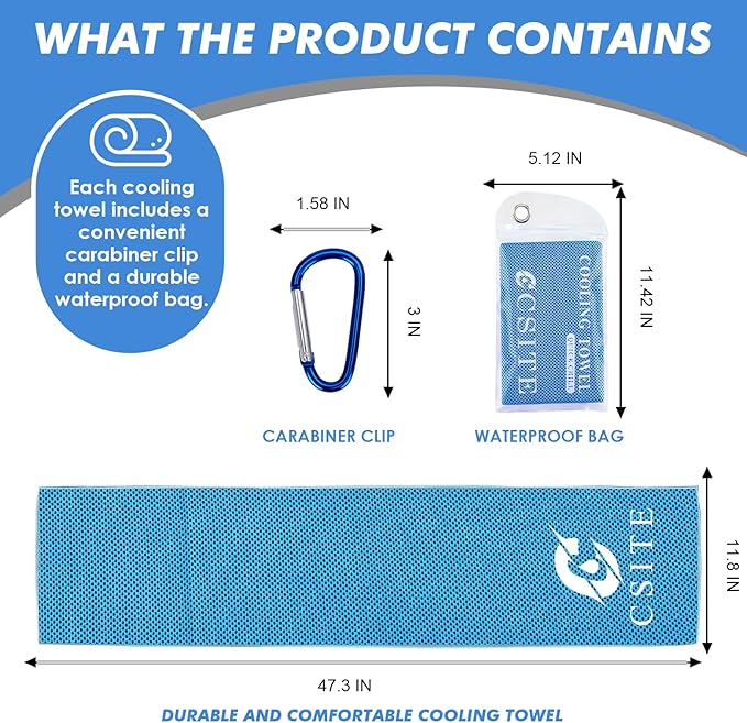 - 【DESIGN FEATURES】: Measuring "47x12", the cooling towel offers ample coverage for your neck and face and other body areas. Expanding the size brings better cooling effects. Crafted from high-quality materials, these towels are durable and longevity, providing a dependable, cost-effective cooling solution for the long term. Feel free to contact us for any issues.