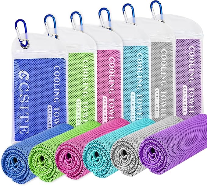 - 【EASY TO CARRY & CLEAN】 : Each cooling towel comes with a waterproof plastic pouch and a carabiner clip, allowing you to effortlessly carry it for gym, yoga, sports or working out. They're easy to store and conveniently attachable to sports bags and travel backpacks.During exercise, it can be used as neck cooling wrap, sweat-absorbent rag and more. Cold towels can be hand-washed or machine-washed and reused.