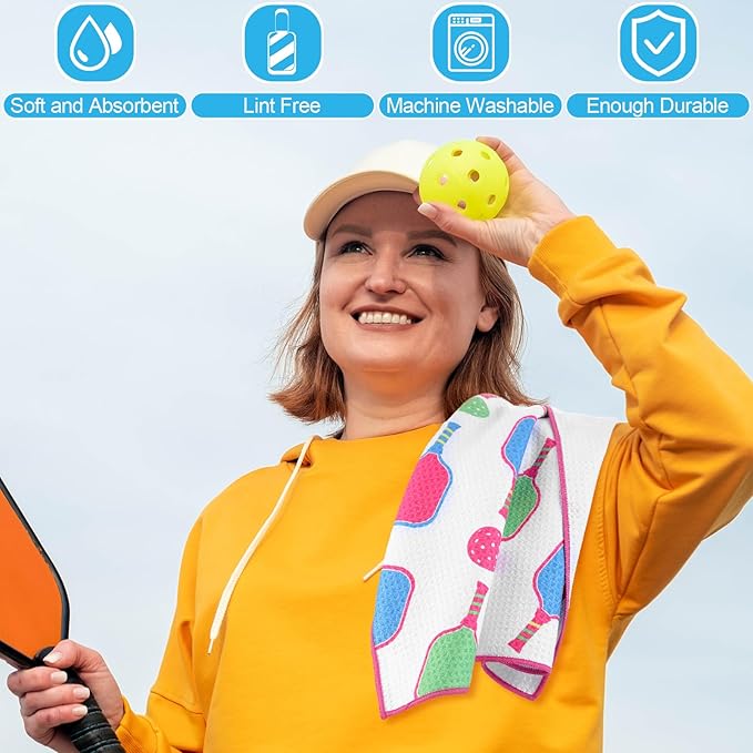 - Quality for Maximum Absorption: these athletic towels are made from quality microfiber material that's not just soft and quick drying, but also absorbent, it worked great for drying off your dink ball from a wet court; Lightweight and sturdy, these towels are so easy to clean you'll reach for them every time you play