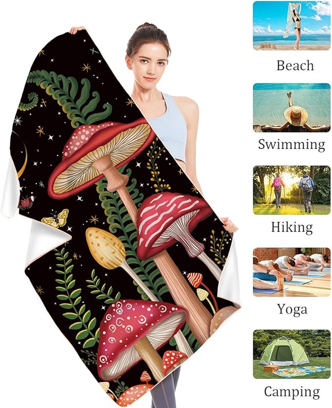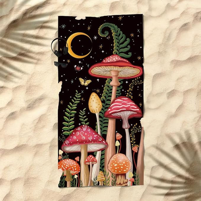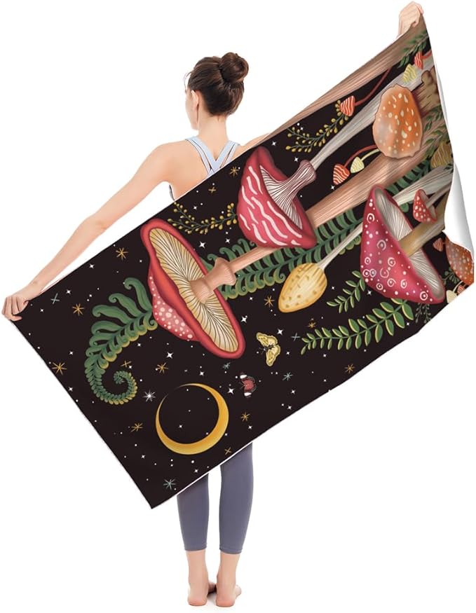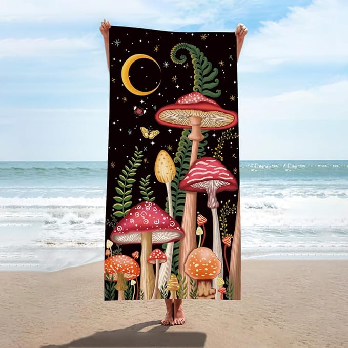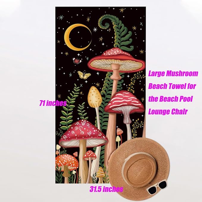 Microfiber Oversized Lightweight Thick Mushroom Beach Towel 71"x31.5" XL Extra Large Terry Sand Free Towels Travel Swim Pool Yoga Gym Camping for Women Men Beach Essentials Accessories Vacation Gift