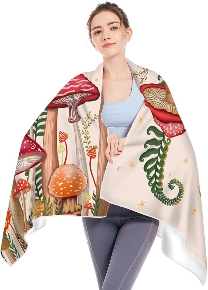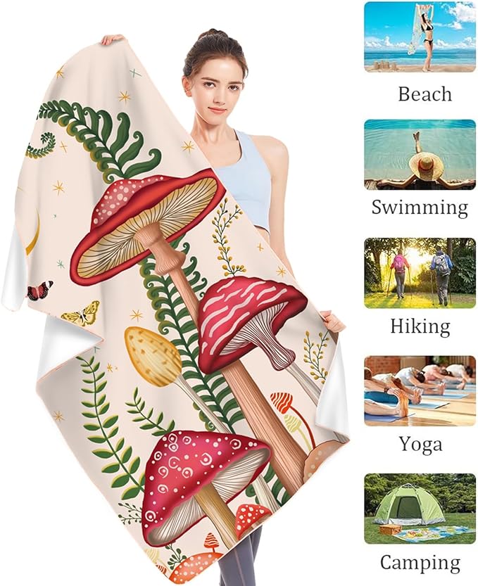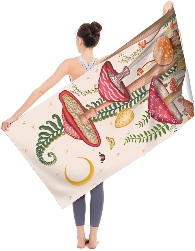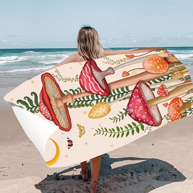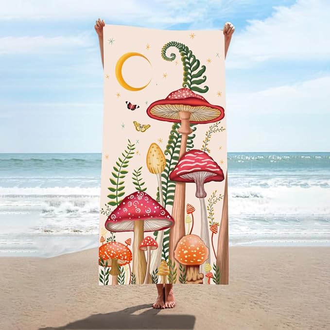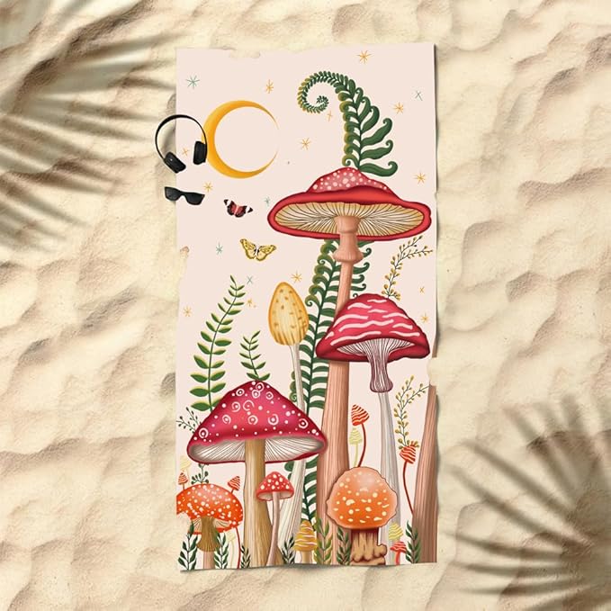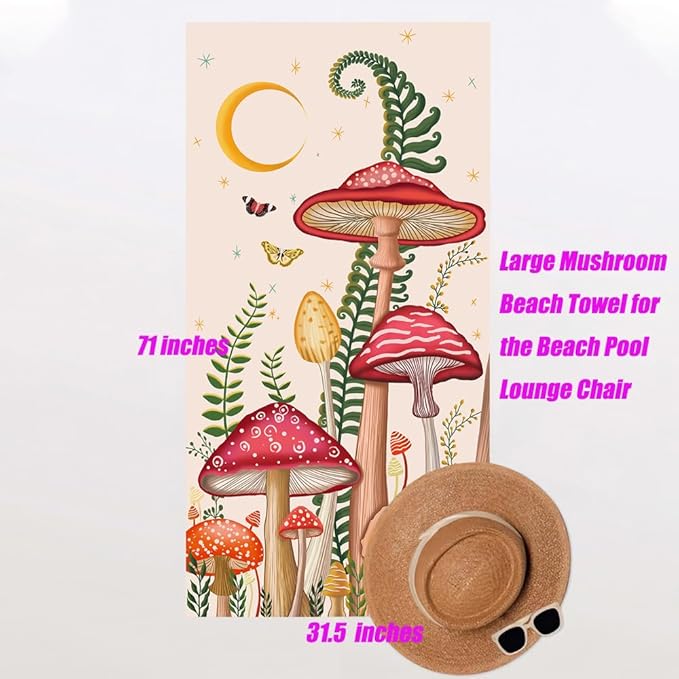Microfiber Oversized Lightweight Terry Mushroom Beach Towel 71"x31.5" XL Extra Large Thick Sand Free Towels Travel Swim Pool Yoga Gym Camping for Women Men Beach Essentials Accessories Vacation Gift