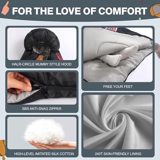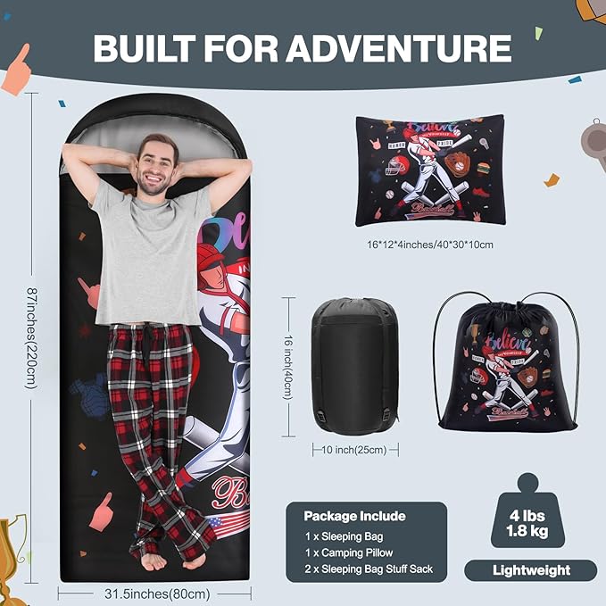 - 【SKIN-FRIENDLY FABRIC】The baseball sleeping bag is made with 100% soft and breathable polyester fibers, ensuring a cozy and restful nap spot for your little one. It serves as a warm and restful spot for kids to have a quick nap or relax, allowing them to recharge their energy.