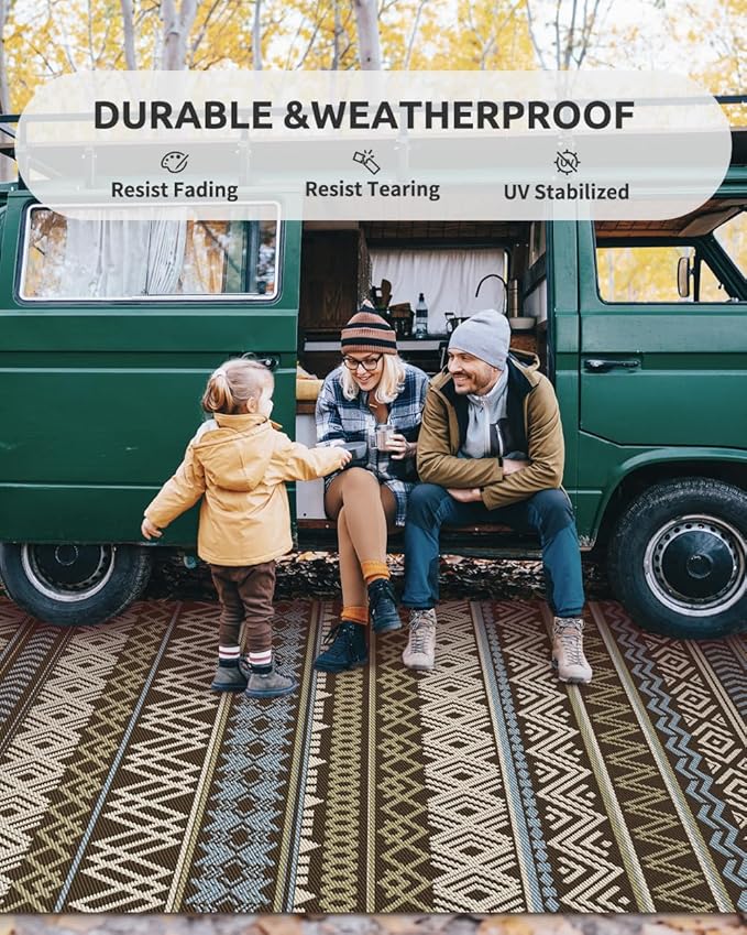 • Reversible & Versatile: Reversible mat offers a budget-friendly way to change designs and enjoy added convenience without buying a new rug. Large outdoor rugs perfect for those outdoor enthusiasts to enhance entertainment spaces. This waterproof outdoor carpet can be widely used as outdoor patio rug under furniture sets, balcony rug, pool deck rug, porch rug, RV rugs for outside, beach mat, picnic mat, outdoor camping rug.