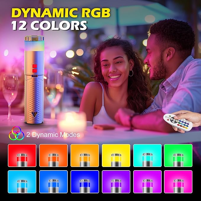 - [Dynamic RGB 12 Colors] Camping light has 12 colors (10 brightness levels), you can pick one (with remote) for summer decorations, to bring yourself to a real fantastic lighting experience. You can also choose different color loops (Strobe and Fade). 2 elegant color changing modes create great mood lighting. Adjust the colors and brightness to your preferences, turning a single light to vivid light shows and bringing a strong visual impact and sensory experience for people.