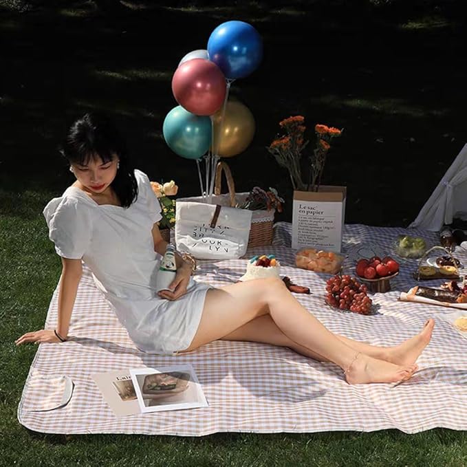- Premium Material: Our mat is made of high-quality oxford fabric, non-toxic, light-weight and comfortable. Attractive Design For Photos, Cute gingham blanket with white and tan checkers looks great in photos, on grass or sand.It is your best companion for daily life and outdoor life! Also a gift to your family.