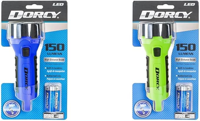 Dorcy 150 Lumen Floating Water Resistant LED Flashlight with Carabineer Clip Bundle - Blue (41-2514) and Neon Green (41-2513)