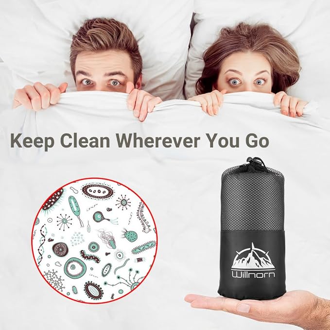 - Perfect Size and Comfort - The sleeping bag liner measures 86.6 x 37.4 in,it provides ample space for taller individuals. Perfect stitching and soft materials immerse you in comfort. In addition, we have designed a pillow pocket for added convenience. When traveling, you can rest on your own pillow for a healthier and more comfortable sleep.