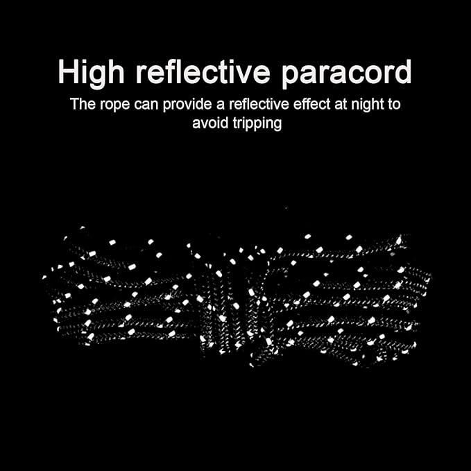 - Highly reflective guy lines uniquely contains high reflective filaments, giving much greater visibility even in low light conditions, to keep safe at night.