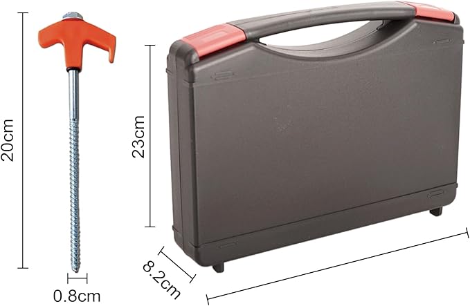 - 🏕️【Heavy Duty Construction】Crafted from high-quality steel, these 8 screw in tent stakes are built to withstand the rigors of outdoor use. Their heavy-duty construction ensures long-lasting durability and reliable performance, giving you peace of mind knowing that your equipment is anchored securely during your outdoor excursions.