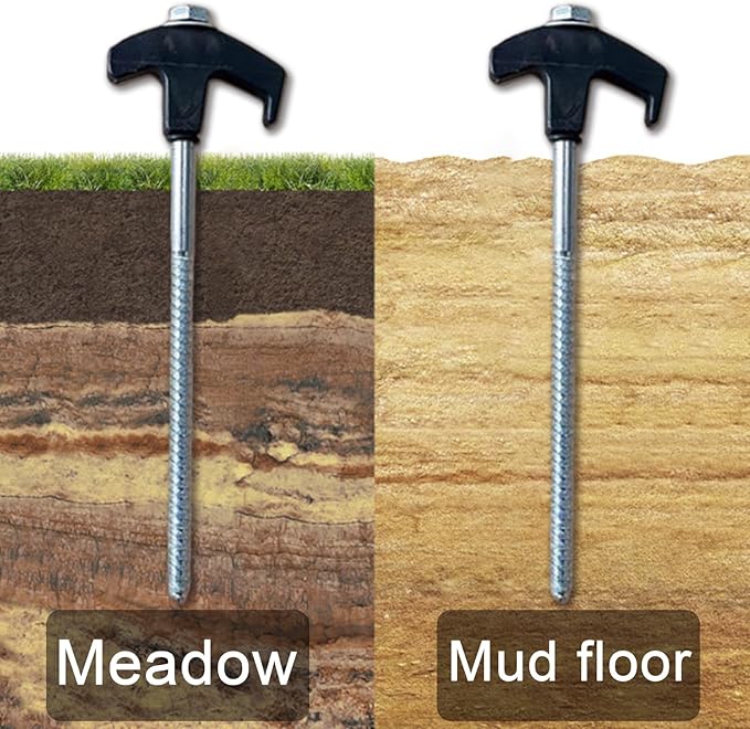 - 🏕️【Heavy Duty Construction】Crafted from high-quality steel, these 8 screw in tent stakes are built to withstand the rigors of outdoor use. Their heavy-duty construction ensures long-lasting durability and reliable performance, giving you peace of mind knowing that your equipment is anchored securely during your outdoor excursions.