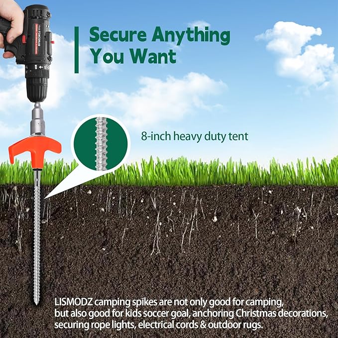 - Secure Anything You Want: LISMODZ camping spikes are not only good for camping, but also good for kids soccer goal, anchoring Christmas decorations, securing rope lights, electrical cords & outdoor rugs.