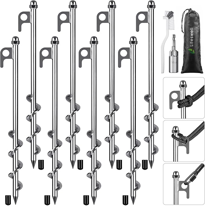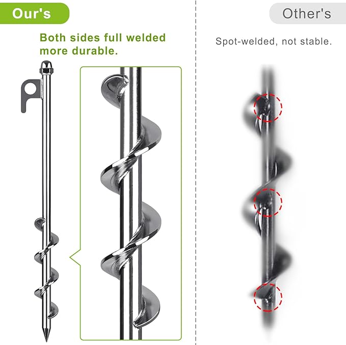 - 【Easy to Install and Remove】You can easily screw these spiral anchor into the ground with a drill and screw them out again when you don’t need them. You can install them in a few minutes, saving your time and effort.