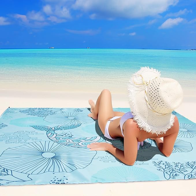 - 🏖STYLISH PATTERN: This oversized beach blanket is stylish and eye-catching, with a unique print pattern - sea world, turtles, flowers and whales to make you stand out on the beach! You can easily find your family and friends on the beach without worrying about getting lost