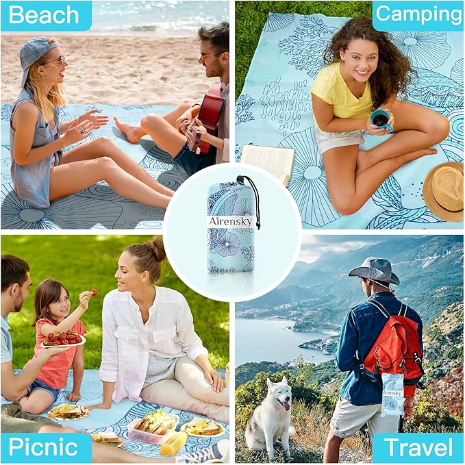 - 🏖MULTIFUNCTIONAL OCCASIONS: Our outdoor beach blanket can effectively block the ground moisture, grass and mud, suitable for adults, teenagers and children, suitable for travel camping hiking beach family picnic outdoor park, can also be used as awning,tent,toddler crawling,emergency mat