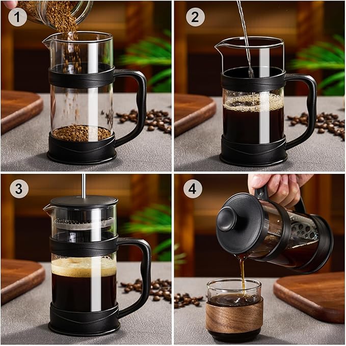 - 【Easy to Use】 This french press coffee maker things simple. You can easily brew a pot of rich and aromatic coffee in just a few minutes with this 11.8 oz coffee press. And the transparent glass allows you to see the coffee brewing process, increasing your coffee brewing pleasure.