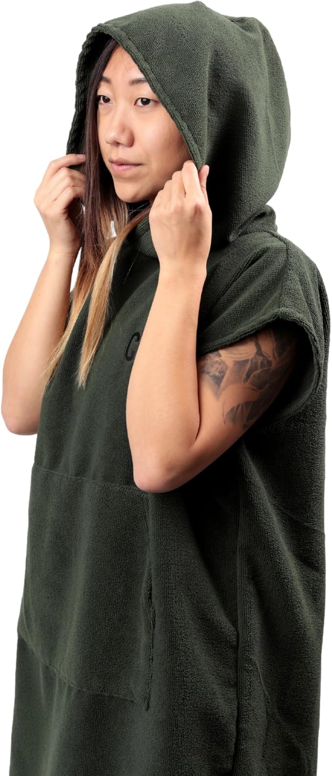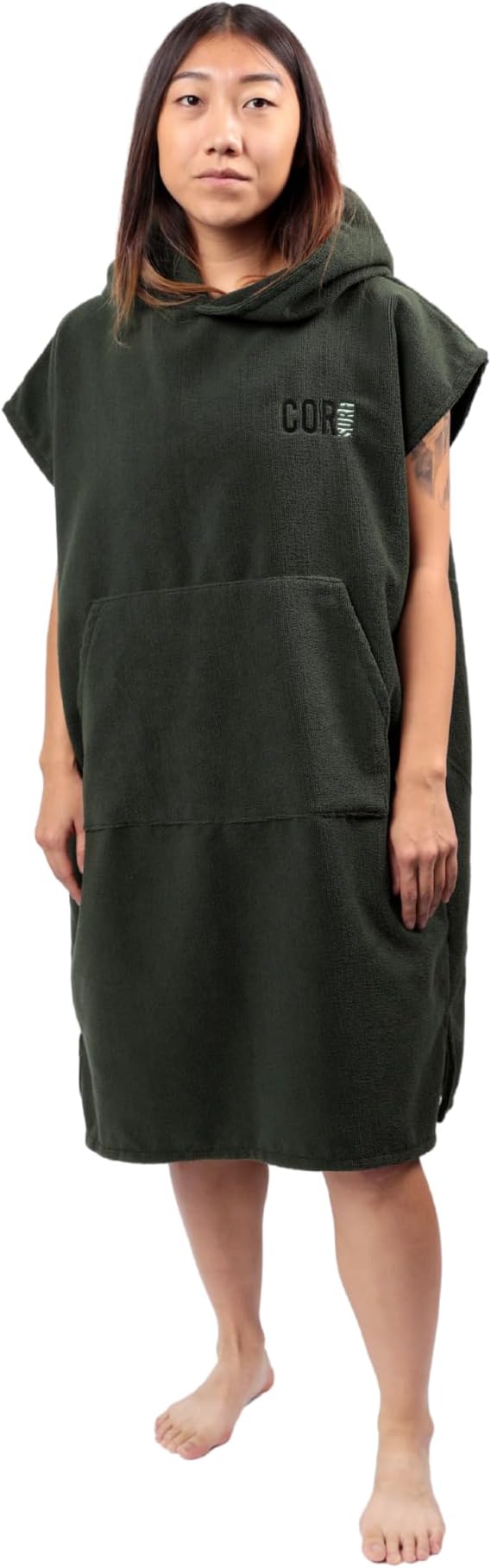 COR Surf Poncho Changing Towel Robe with Hood and Front Pocket | Thick Quick Dry Microfiber Wetsuit Poncho Towel for Surfing Beach Pool Swim (Ranger Green, Medium)