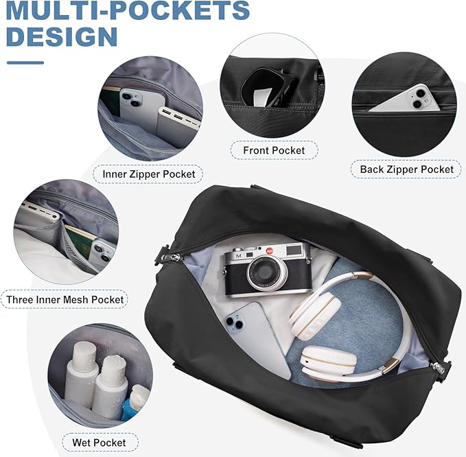 • Large Capacity and Multiple Pockets: This travel bag has 6 multiple internal and 2 external organizational pockets,which ensure you have a place for everything.Dimensions: 10.63 x 21.65 x 7.09 inches; Capacity: 30 L; Suitable for a 3-5 day trip