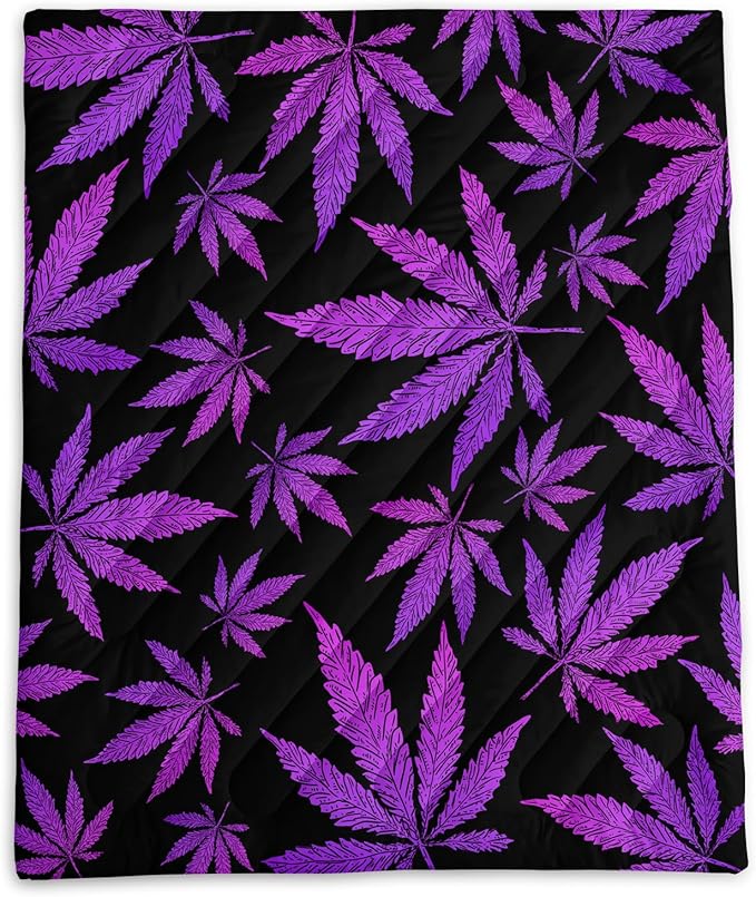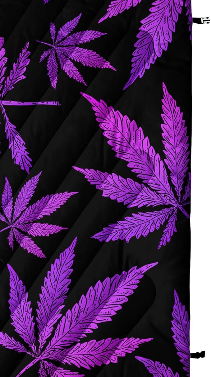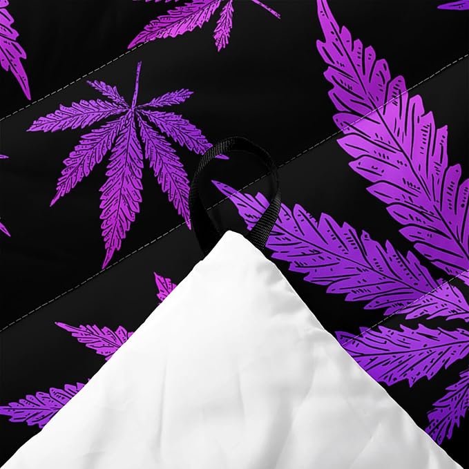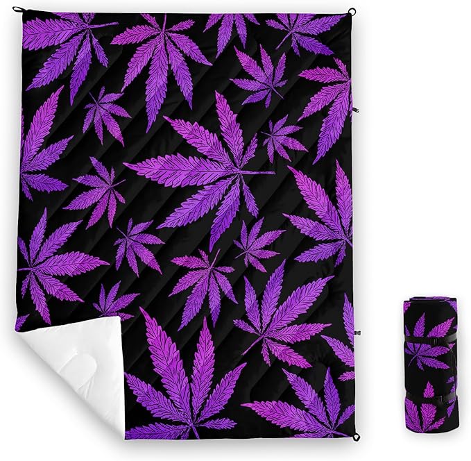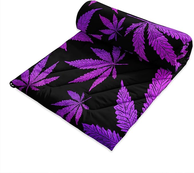 Axolotl Purple Black Leaves Puffy Camping Blanket,Floral Botanical Packable Outdoor Blanket,Needle Leaf Lightweight Waterproof Camping Blanket,Waterproof Backpacking for Camping,Sleeping,Hiking,Picnic
