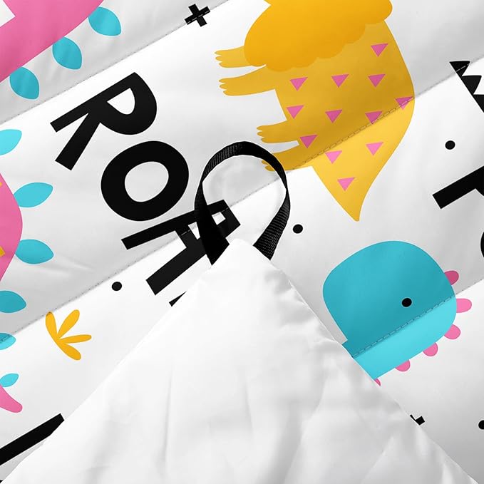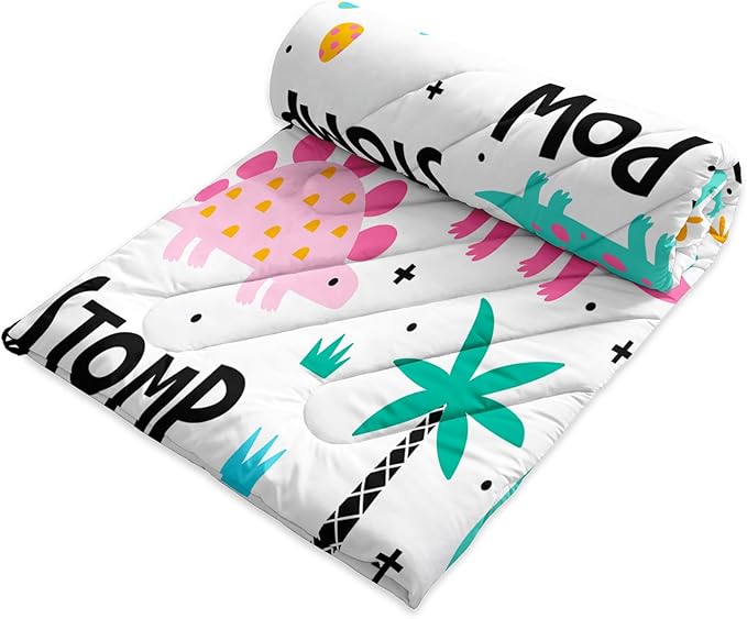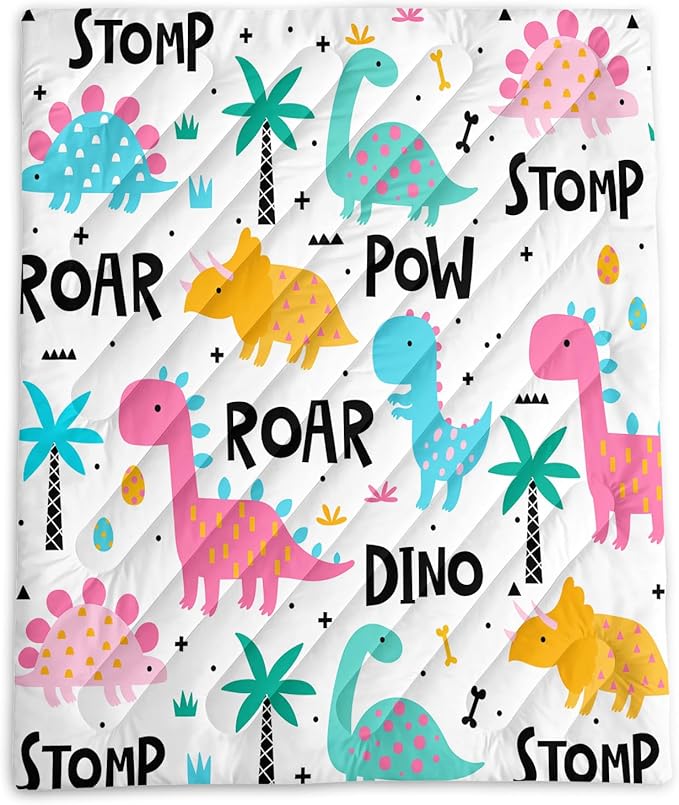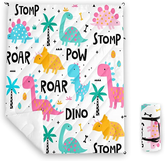 Axolotl Colorful Dinosaur Camping Blanket,Plam Trees Dino Eggs Packable Outdoor Blanket,Wild Animal Theme Lightweight Puffy Camping Blanket,Roar Dino Travel Blanket for Traveling Picnic Cold Weather