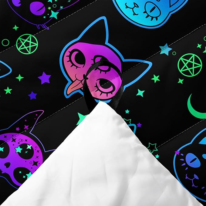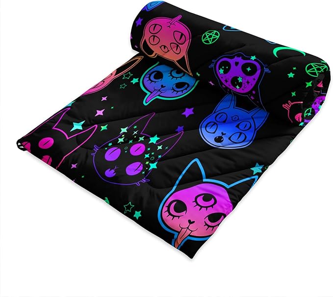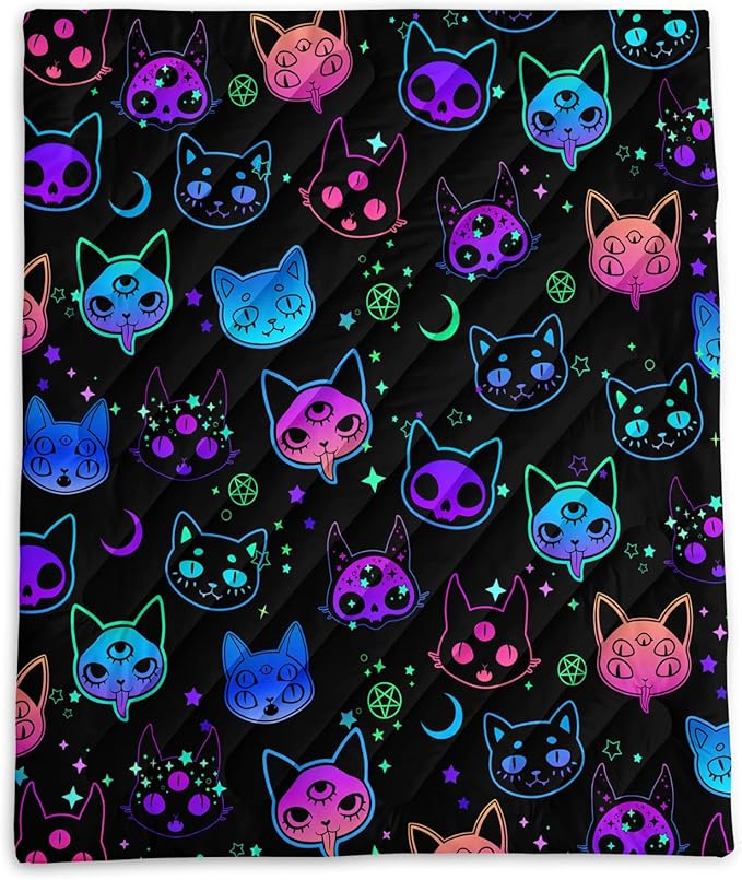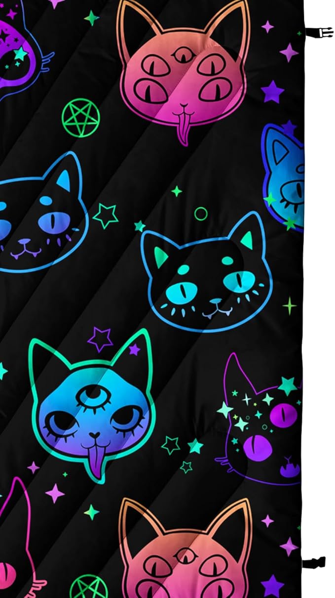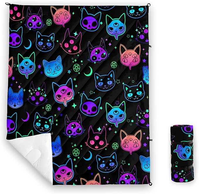 Axolotl Neon Cat Camping Blanket,Ghost Trippy Cat Packable Outdoor Blanket,Star Moon Lightweight Warm Printed Blanket,Funny Cat Halloween Waterproof Travel Blanket for Camping,Travel,Stadium,Hiking