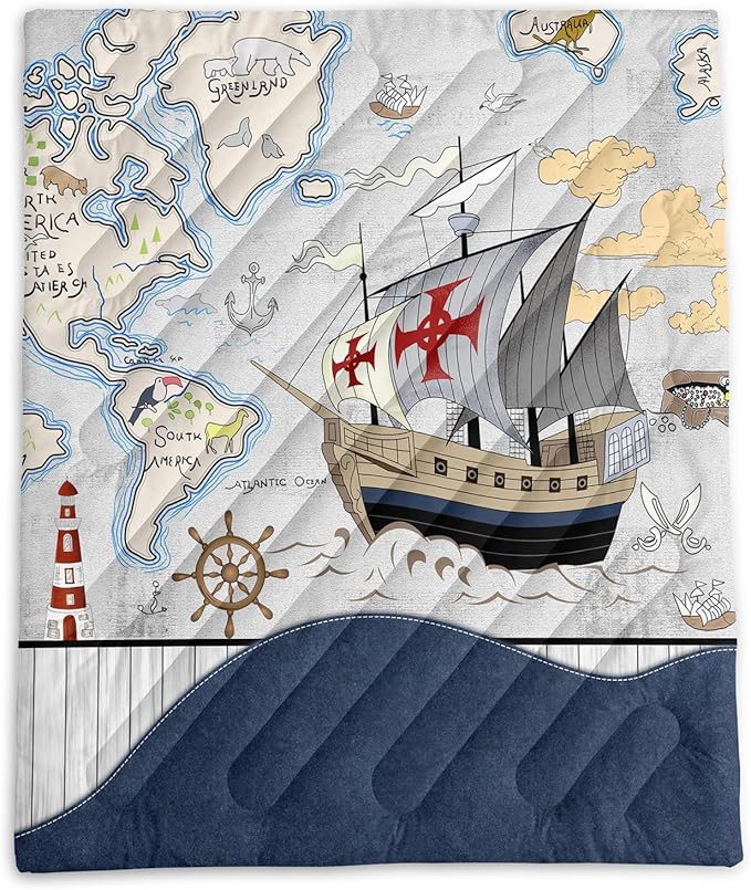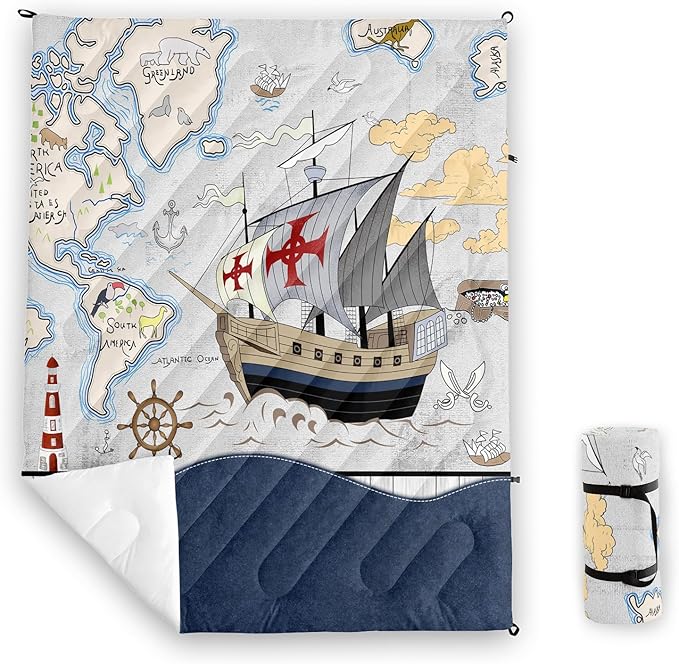 Axolotl Nautical Camping Blanket,Sailboat World Map Packable Outdoor Blanket,Sailing Anchor Lightweight Waterproof Camping Blanket,Ocean Themed Outdoor Blanket for Picnic Hiking Traveling Cold Weather