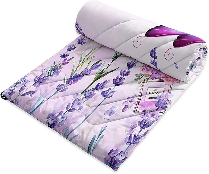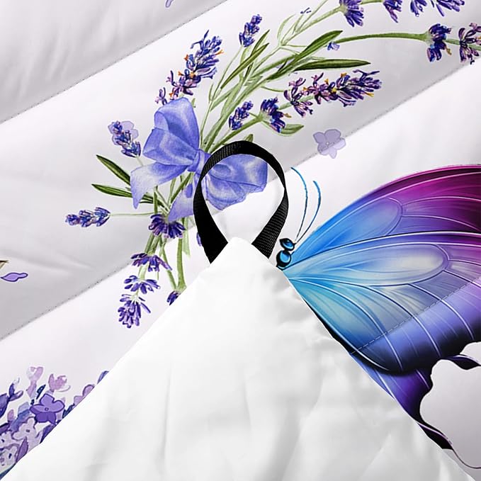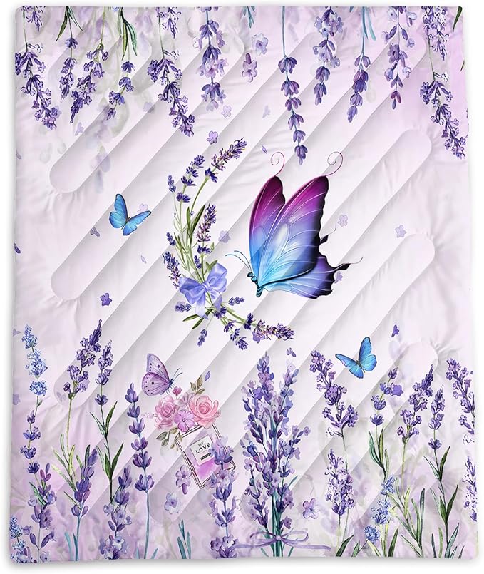 Axolotl Butterflies Camping Blanket,Lavender Packable Outdoor Blanket,Violet Flowers Perfume Lightweight Puffy Printed Camping Blanket,Purple Floral Waterproof Blanket for Traveling Beach Cold Weather