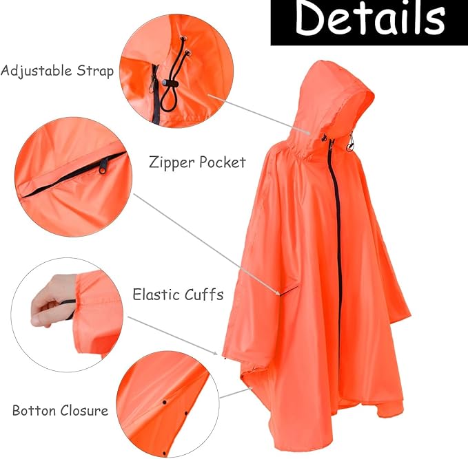- Our compact rain poncho is designed for outdoor activities: hiking, camping, fishing. Easy to pack.