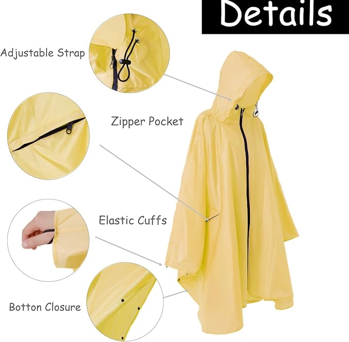 - Our compact rain poncho is designed for outdoor activities: hiking, camping, fishing. Easy to pack.