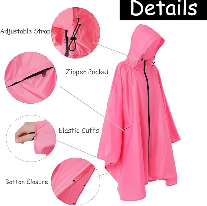 Plus Size Adult Rain Poncho with Hood and Zipper, Poncho Para Lluvia, Tactical Ponchos Adult For Camping, HikingB0D3DB5M93