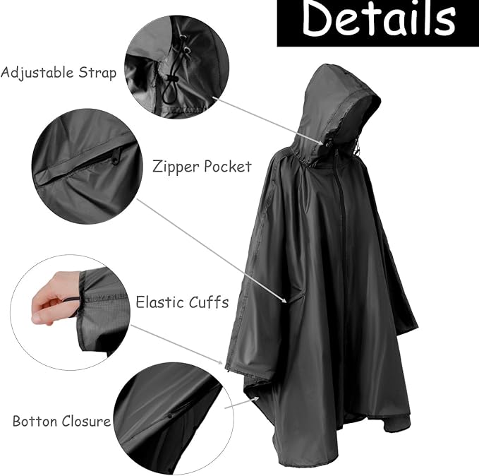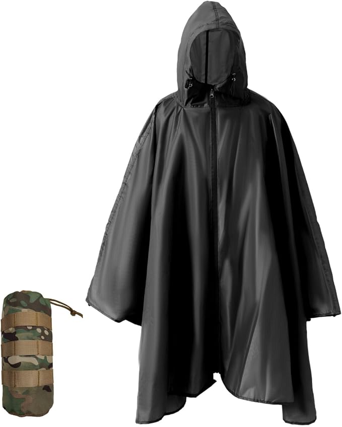 Plus Size Adult Rain Poncho with Hood and Zipper, Poncho Para Lluvia, Tactical Ponchos Adult For Camping, HikingB0D3DBJYBP