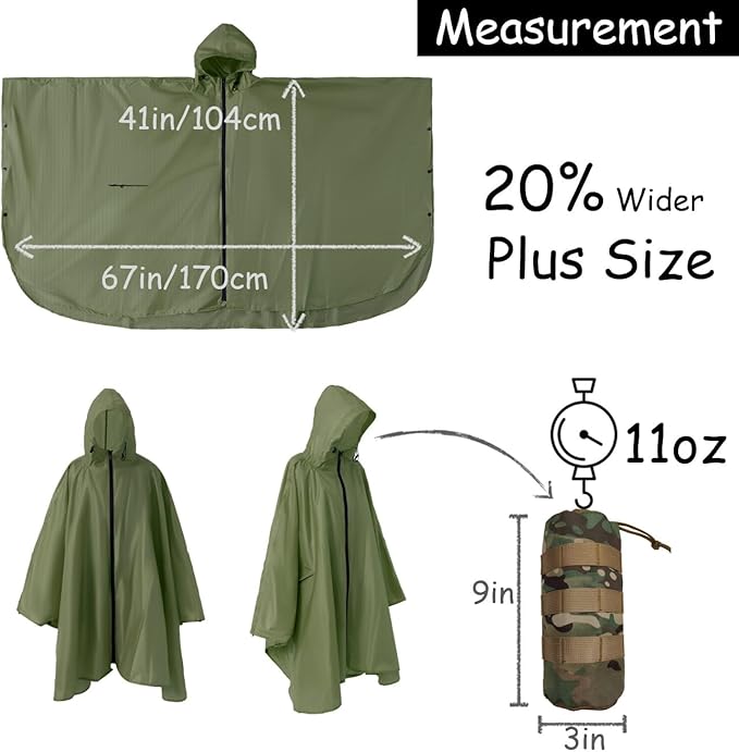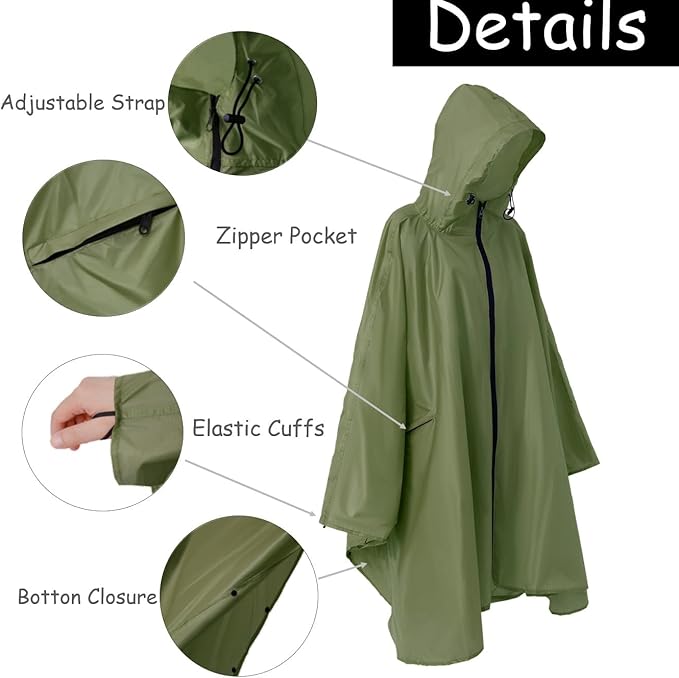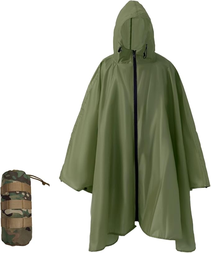 Plus Size Adult Rain Poncho with Hood and Zipper, Poncho Para Lluvia, Tactical Ponchos Adult For Camping, HikingB0D3DBLLC9