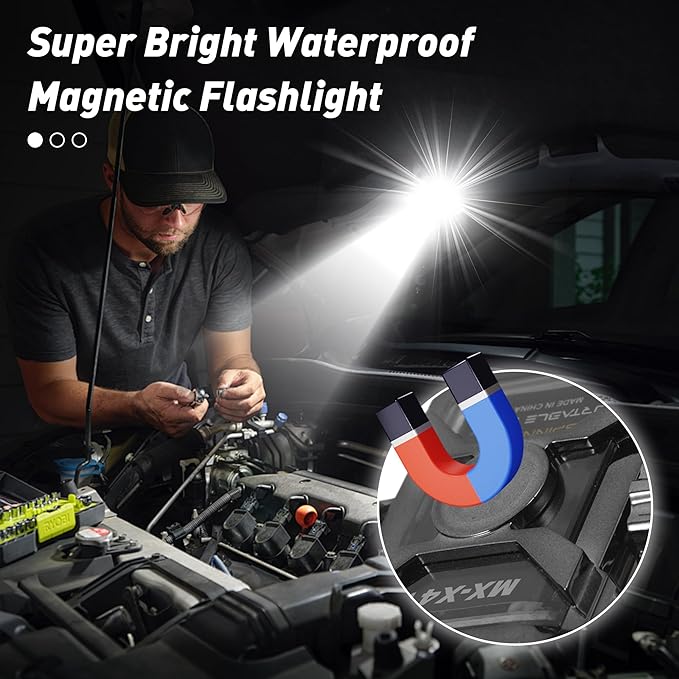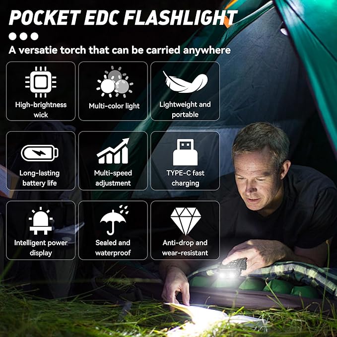 - 【EDC flashlight with Magnet 】 The flashlight is an EDC flashlight with a strong magnet on the bottom to firmly hold iron objects to easily attach it to iron objects on the car. Flashlight could totally let you hands free when you need do some repair working at night, emergency car inspection or power outage at typhoon weather
