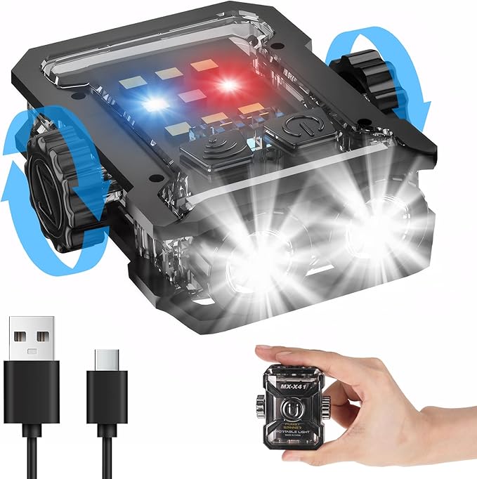 - 【Super Bright 6 Modes】Our rechargeable flashlights have 6 lighting modes: Strong dual light, low dual light, dual flash, strong white light, blue light always on, red and blue light flashing. It is a new release EDC flashlight with two buttons that can turn on any two modes at the same time. The lightweight and practical LED flashlight can be widely used for daily lighting, power outages, emergencies, etc. It can also be used for outdoor sports such as dog walking, camping, hiking, fishing, running