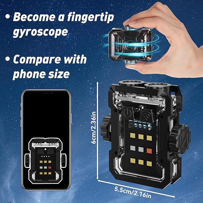 - 【New Rotating Gyro Design】Made with high-quality (Aluminum Alloy + PC) materials and featuring a sturdy designand fashionable appearance. Its independent dual switch control allows for easy to use and ensures long-lasting performance.This LED flashlight is not only functional but also adds a touch of style to your everyday carry. Rotating Gyro allows you to reduce stress and pass the time, relaxing mood