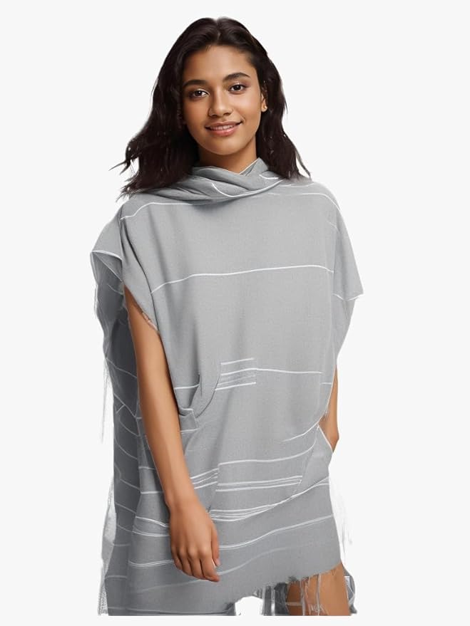 - Portable and Lightweight: No more embarrassing towel slips! Get changed discretely in public whilst wearing a fashionable lightweight poncho hoodie This poncho allows to easily transition out of your bikini swimwear or wetsuit and it easily fits into a beach bag or luggage.