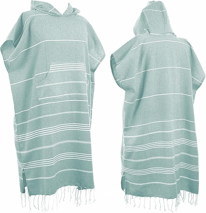 - Ideal Gift: This Turkish surf poncho is ideal for trips to the beach, pool, or even camping; With this beach towel poncho, you no longer need to worry about your towel flying away while changing in a parking lot;It's makes an ideal gift for surfers, swimmers.