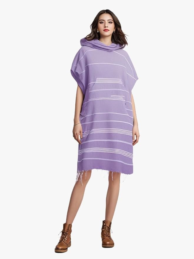 1pcs Large Turkish Cotton Poncho Towel Surf Poncho Changing Towel Robe with Hood and Front Pocket Absorbent Wearable Towel Hooded Beach Towel for Adult Man Women Beach Pool (Purple, Medium)