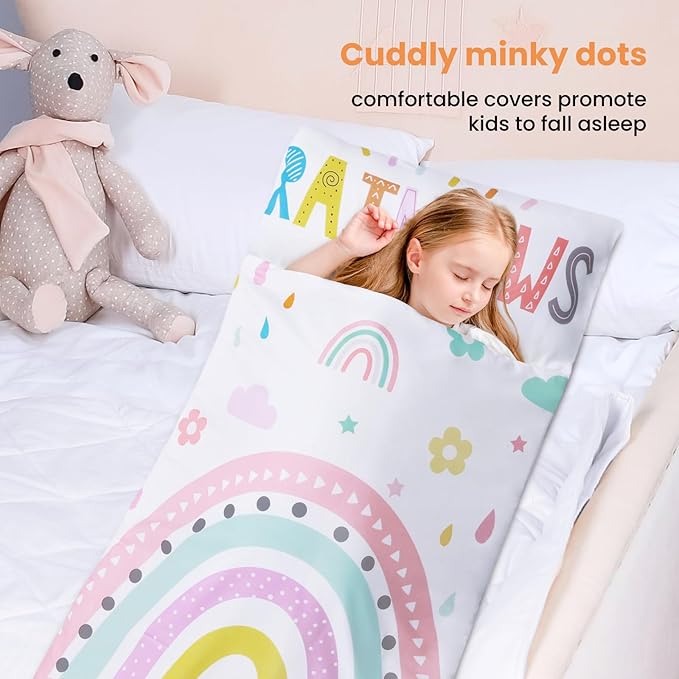 - Portable & Easy to Clean; Slumber sack is equipped with velcro straps and handles, which can be easily rolled up and lifted, very convenient to carry; with a see-through name slot, don't worry about getting the sleeping bag wrong or lost.And it is machine washable. Warm tip:Recommend to take the pillow out before washing.