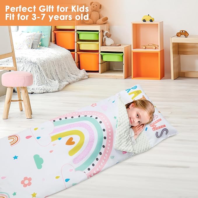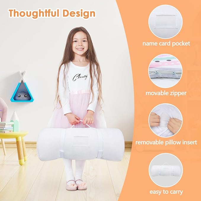 Kids Sleeping Bag Toddler Nap Mat with Removable Pillow, Large Foldable Sleeping Bag for Girls Boys, Easy Clean Slumber Bag with Double Zip for Camping School Preschool Daycare, 59×24 inch