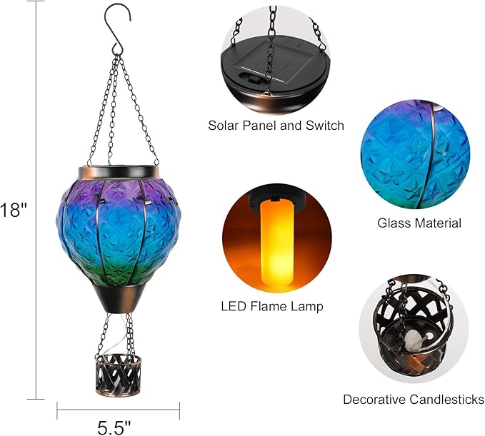 - Perfect Gifts:Whether you are looking for Housewarming, Valentine's Day, Birthday, Father's Day, Easter, Halloween, Thanksgiving, or Christmas gifts, Your family or friends will be delighted to receive hot air balloon solar lanterns. Hot air balloon has rich meanings, which represents courage, hopes, dreams, romantic love. Size:5.8" L x 5.8" W x 18" H.