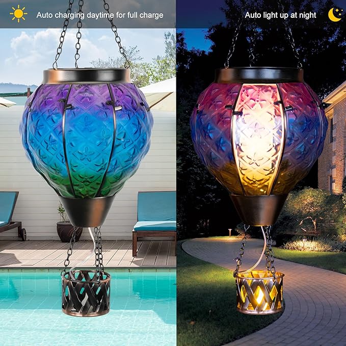 - Wide Application:Solar hot air balloon hanging garden light with metal "S" hooks can be easily hung anywhere, such as balconies,porches,ledges or trees.adding a cozy and romantic atmosphere to your home at night.